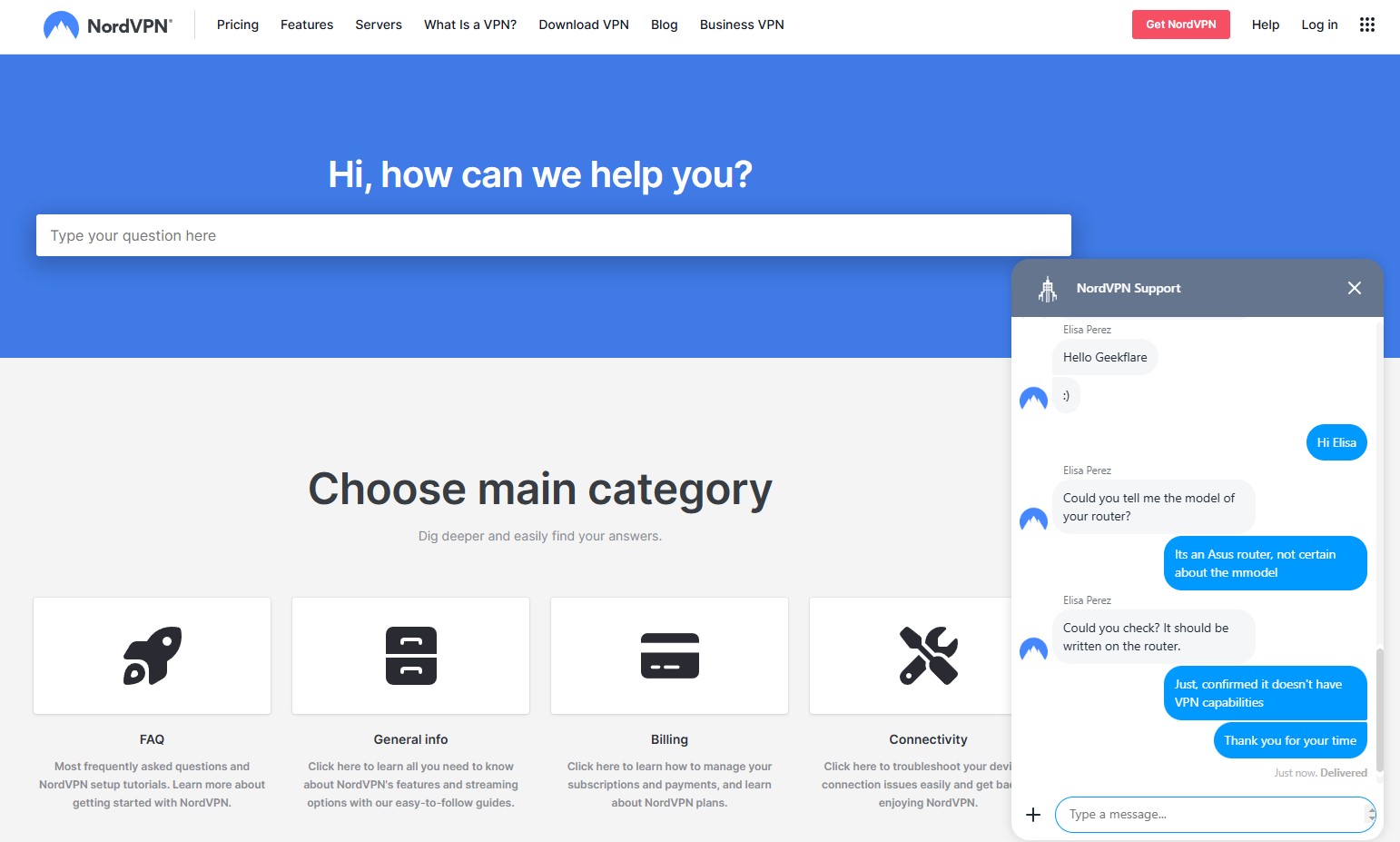 NordVPN’s 24/7 customer support has a live chat feature that’s particularly helpful, providing instant answers to your queries. At the same time, its knowledge base offers step-by-step guides and FAQs for resolving issues independently.