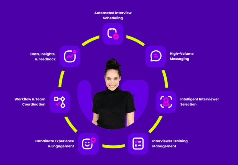 En outre, le logiciel aide les responsables des ressources humaines et les recruteurs à organiser efficacement les entretiens en fournissant un processus transparent de planification et de réservation des créneaux horaires sur les calendriers.