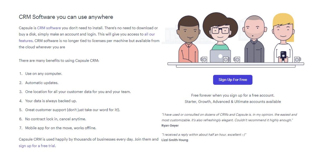 L’utilisation de Capsule CRM présente plusieurs avantages. Il offre un service client exceptionnel, des sauvegardes de données constantes, des mises à jour automatisées, une application mobile hors ligne, et bien plus encore. Vous pouvez l’utiliser sur n’importe quel ordinateur.