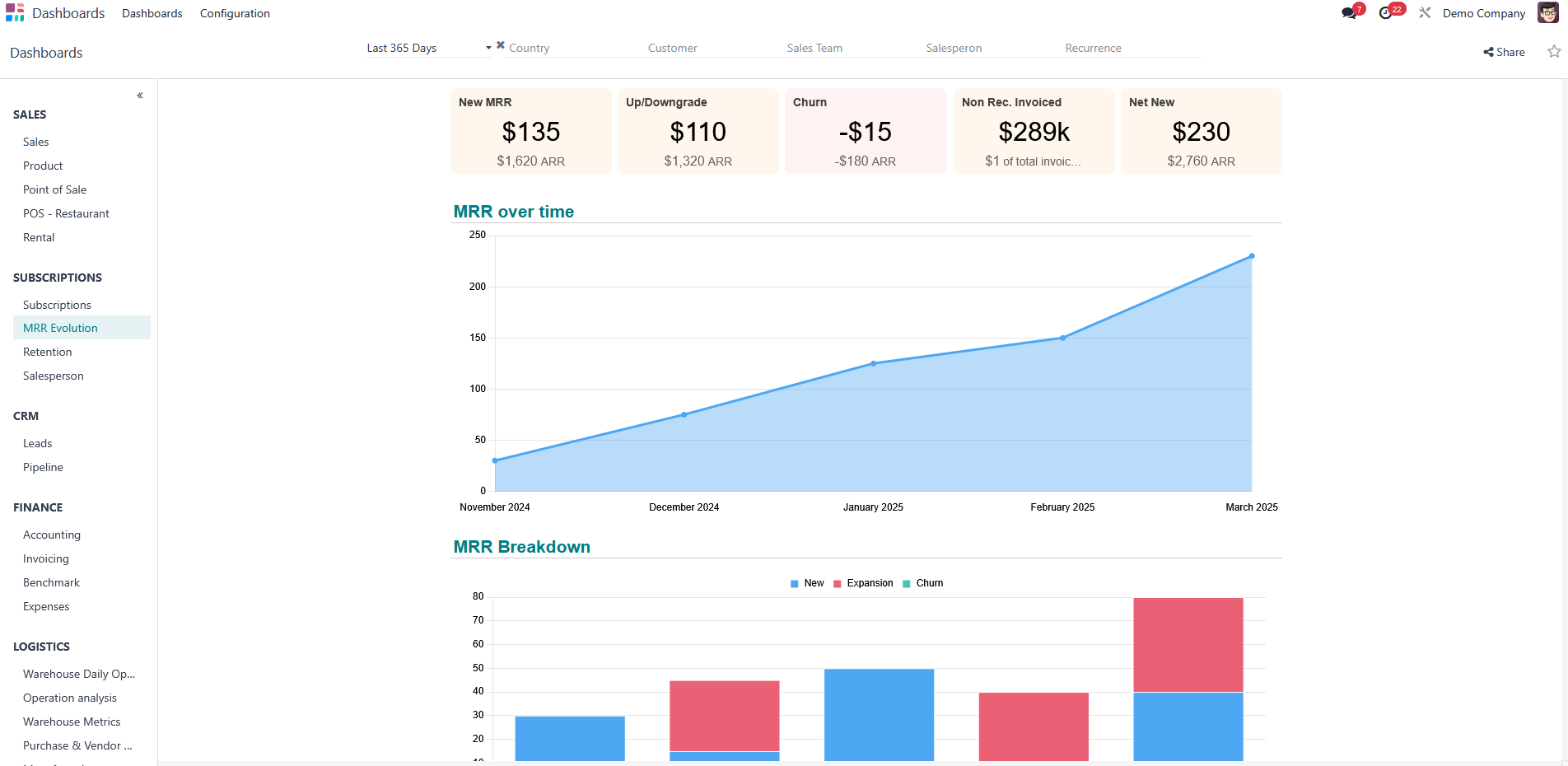 - Contract management, subcontracting, automatic contract extension, commissions, delivery contracts, custom contract terms, and subscription management.