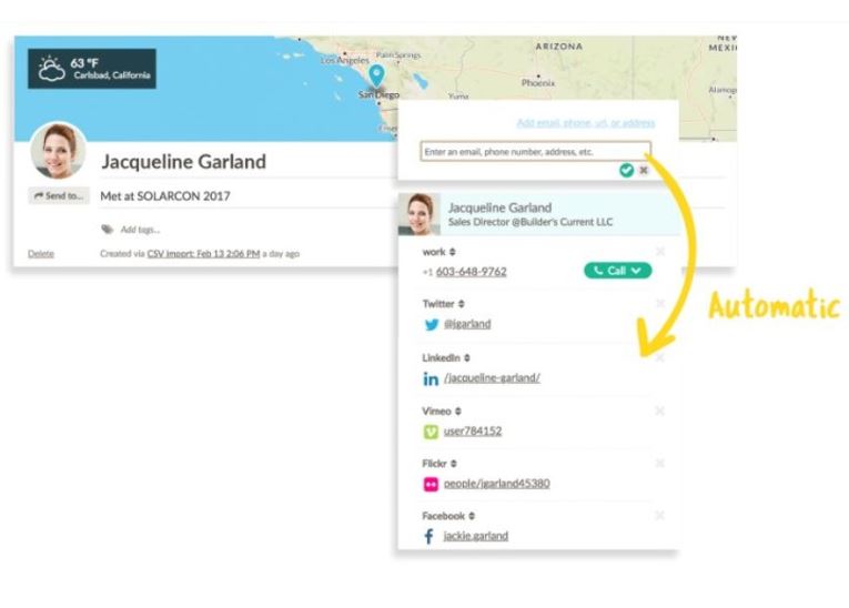 With a single piece of info such as social handles, email addresses, phone numbers, etc., Contacts+ gives you a complete profile. Use the mobile app to scan business cards and save them or upload them in bulk using the web application.