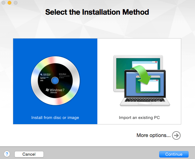 - Click on “Use another disc or disc image” and locate the downloaded iso file. It will appear in the list as shown below, click on Continue