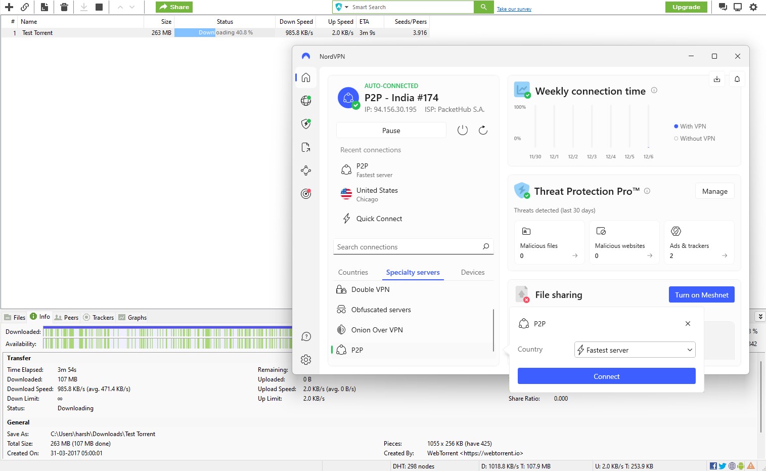 To test NordVPN’s P2P capabilities, I connected to one of its specialized P2P servers and downloaded a large file using uTorrent. The process was smooth, with no interruptions or throttling.