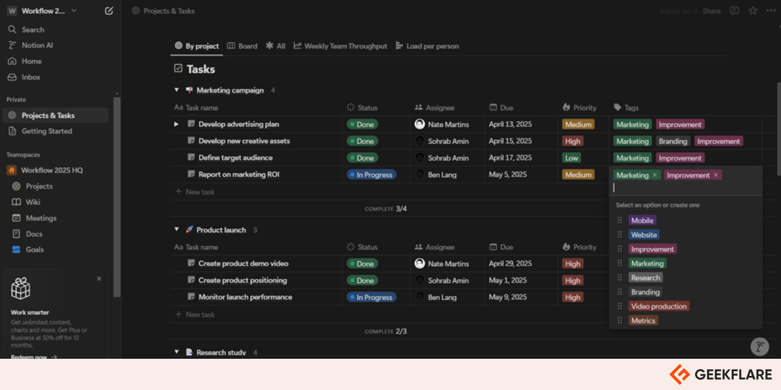 Wrike is an enterprise-ready work management platform to manage workflows, resources, events, campaigns, product lifecycles, and projects. With the help of AI and automation, you can automate routine tasks, get suggestions on what to automate, get reminders, change status, and get insights. I was amazed by the AI mobile feature, which lets you delegate actions through voice commands.