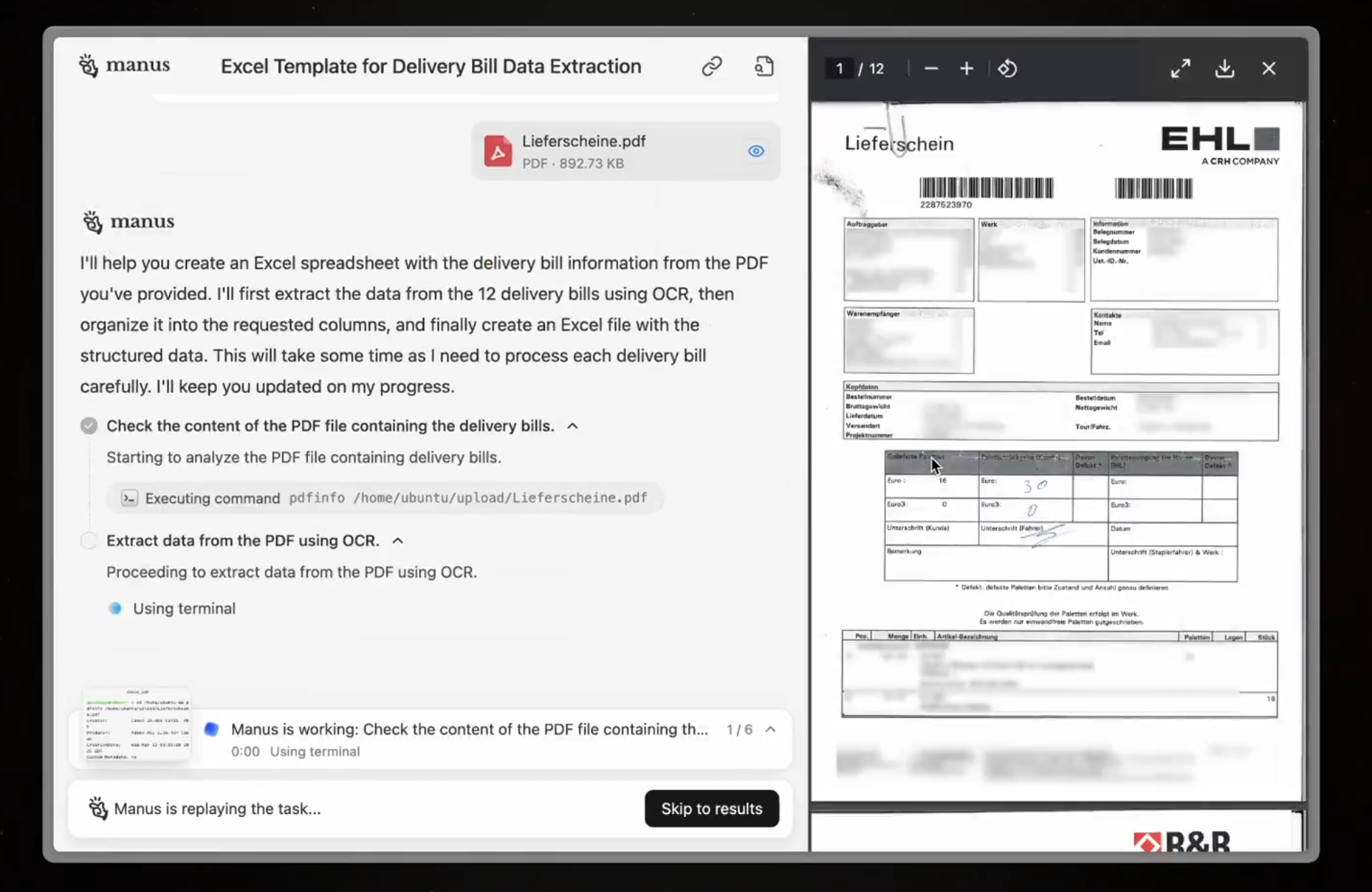 Managing bills has always been a hassle. But Manus’s latest feature claims to solve this issue. The company showed an example of how it turned a pile of delivery bills into a structured Excel spreadsheet. It created custom columns and even broke down goods listed under a single bill into individual rows.